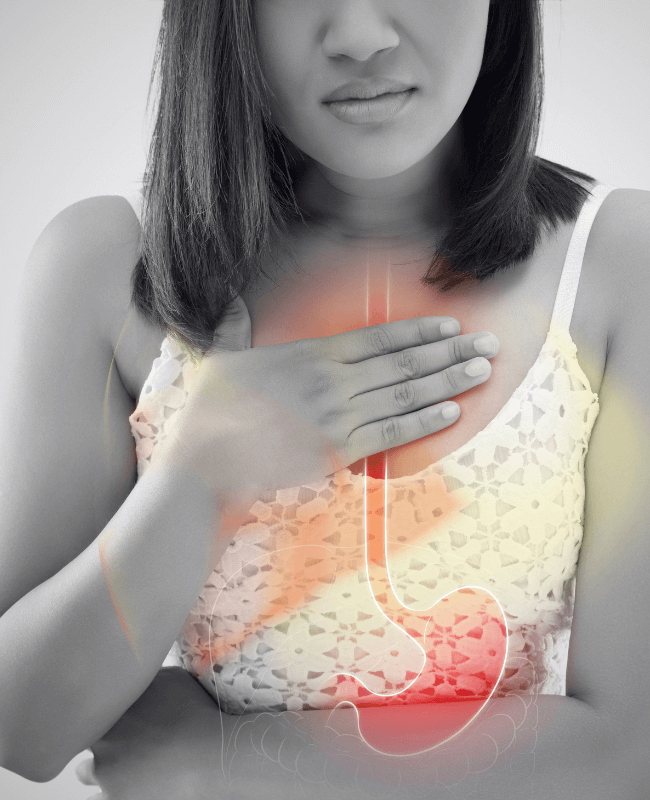 The main symptom of GERD is heartburn, which is a burning pain behind the breastbone that can travel to the back of the throat. The pain can last up to 2 hours and is often worsened by eating, lying down, or bending over. Infants with GERD show signs of irritability, vomiting, and loss of appetite.